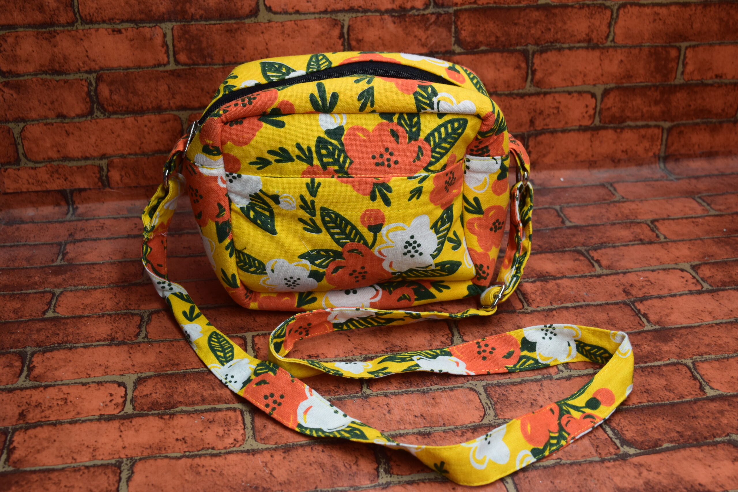 Made up of pure cotton,washable, non quilted sling with a long adjustable strap, ideal for dailywear and local use. It has 1 main zip& 1 side zip.it can accommodate all your dailywear essentials &1/2 ltr water bottle.