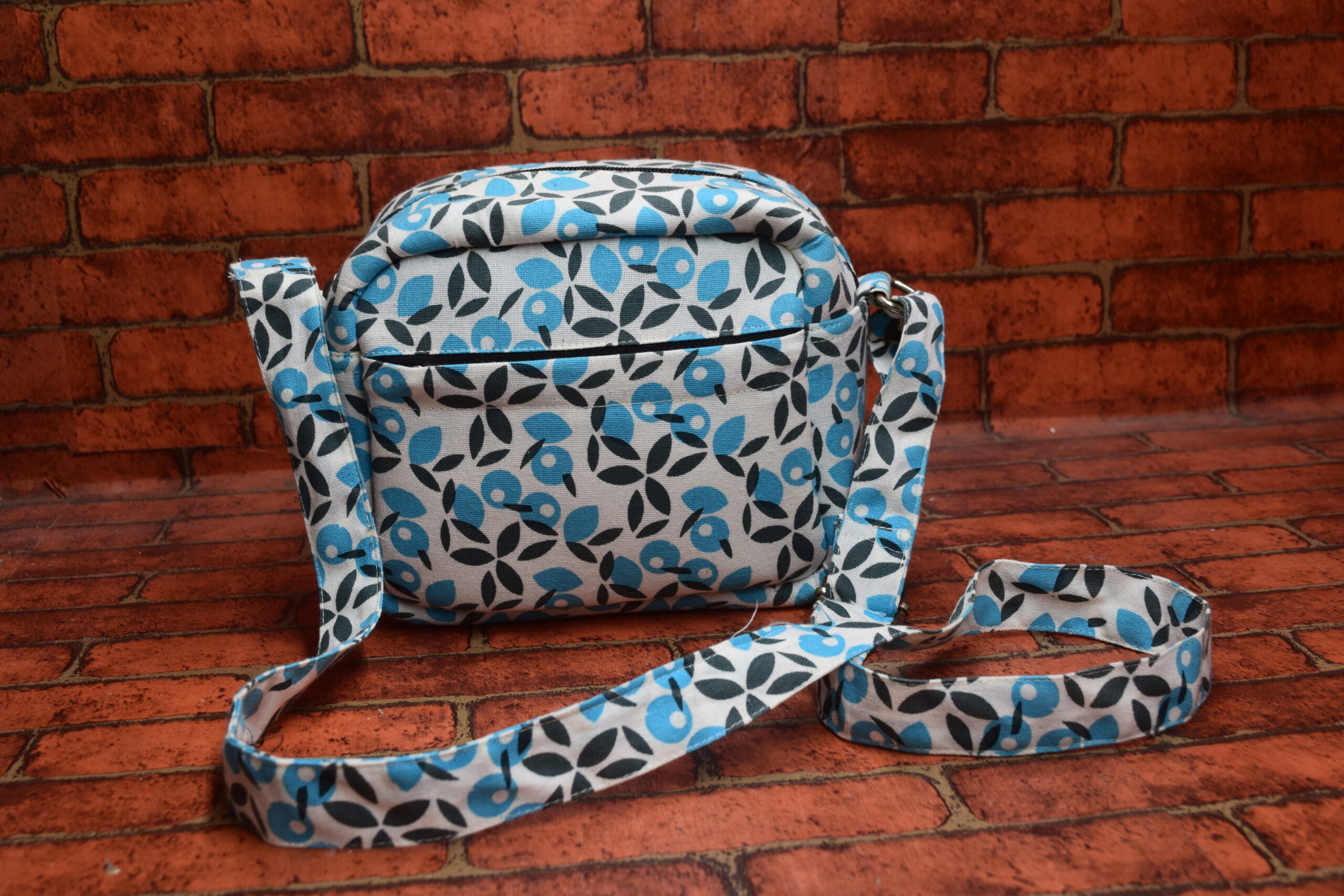 Made up of pure cotton,washable, non quilted sling with a long adjustable strap, ideal for dailywear and local use. It has 1 main zip& 1 side zip.it can accommodate all your dailywear essentials &1/2 ltr water bottle.