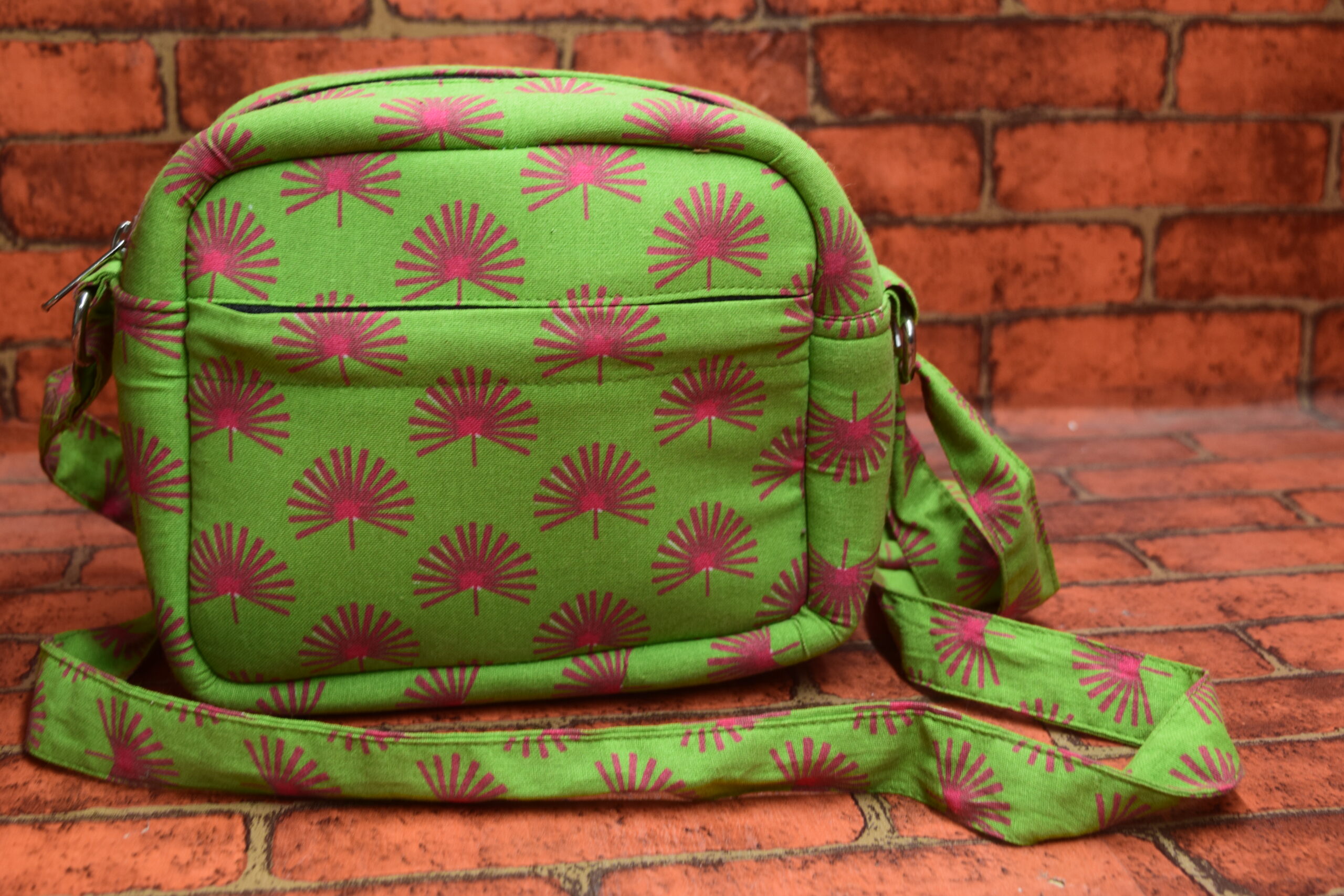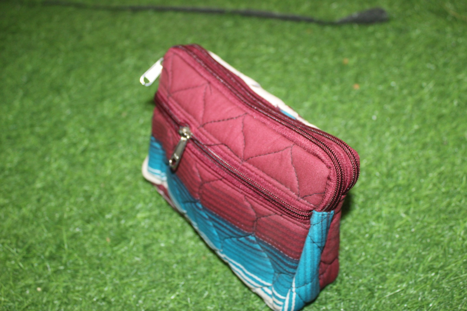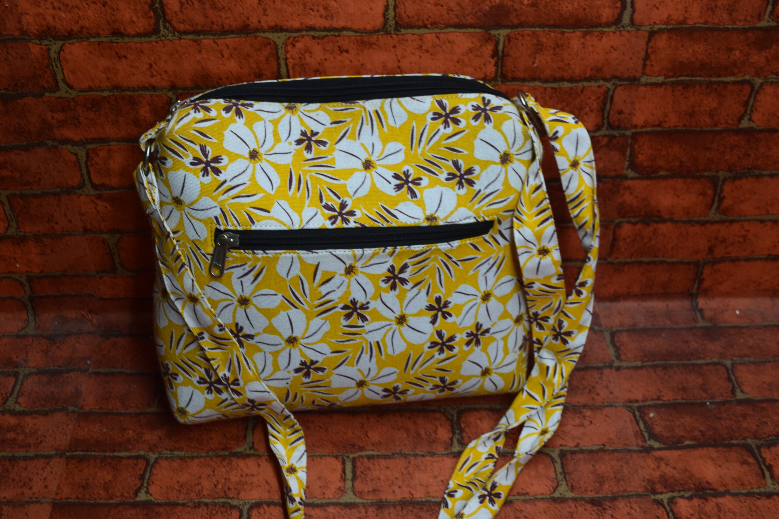 Made up of pure cotton,washable, non quilted sling with a long adjustable strap, ideal for dailywear and local use. It has 1 main zip& 1 side zip.it can accommodate all your dailywear essentials &1/2 ltr water bottle.